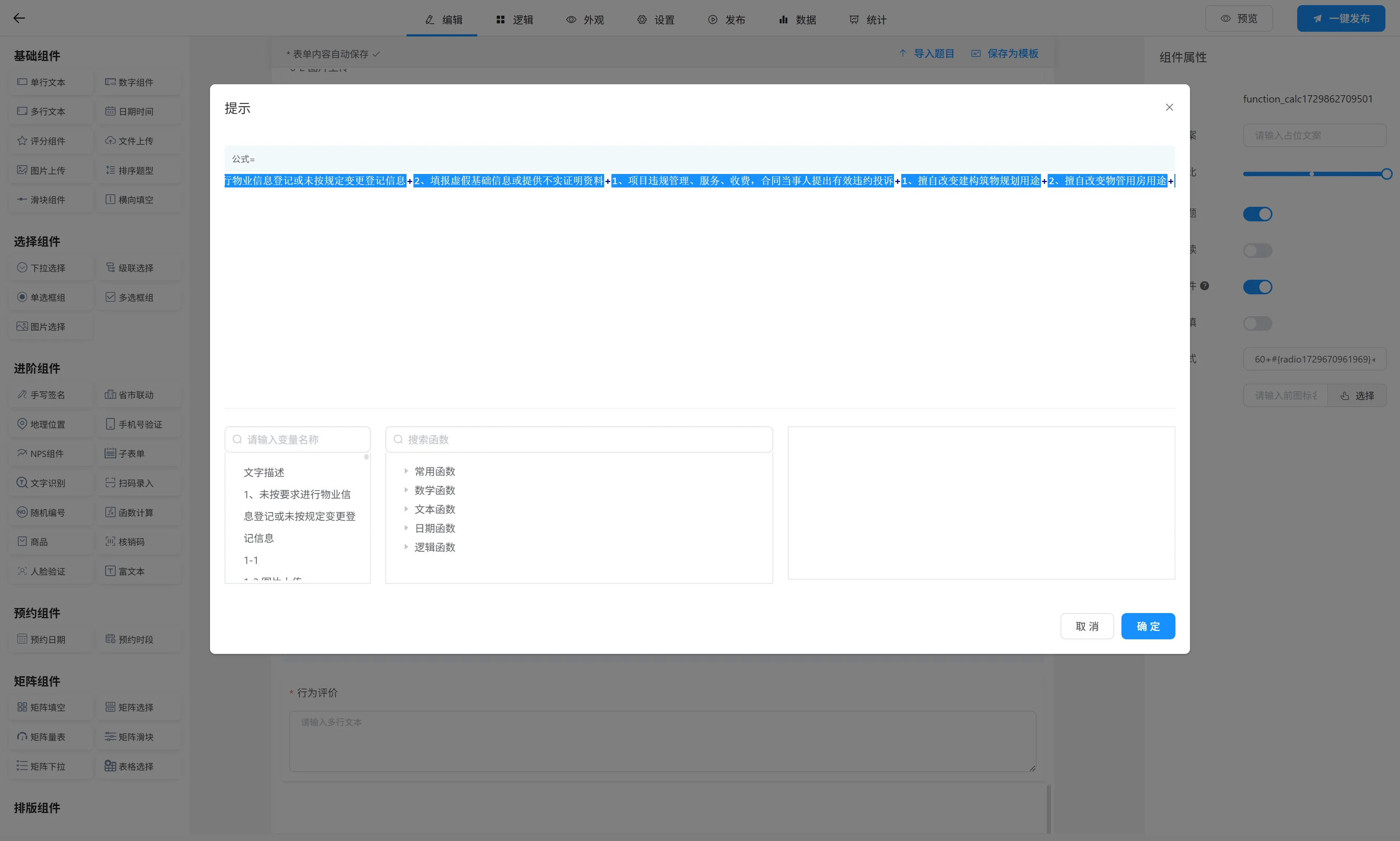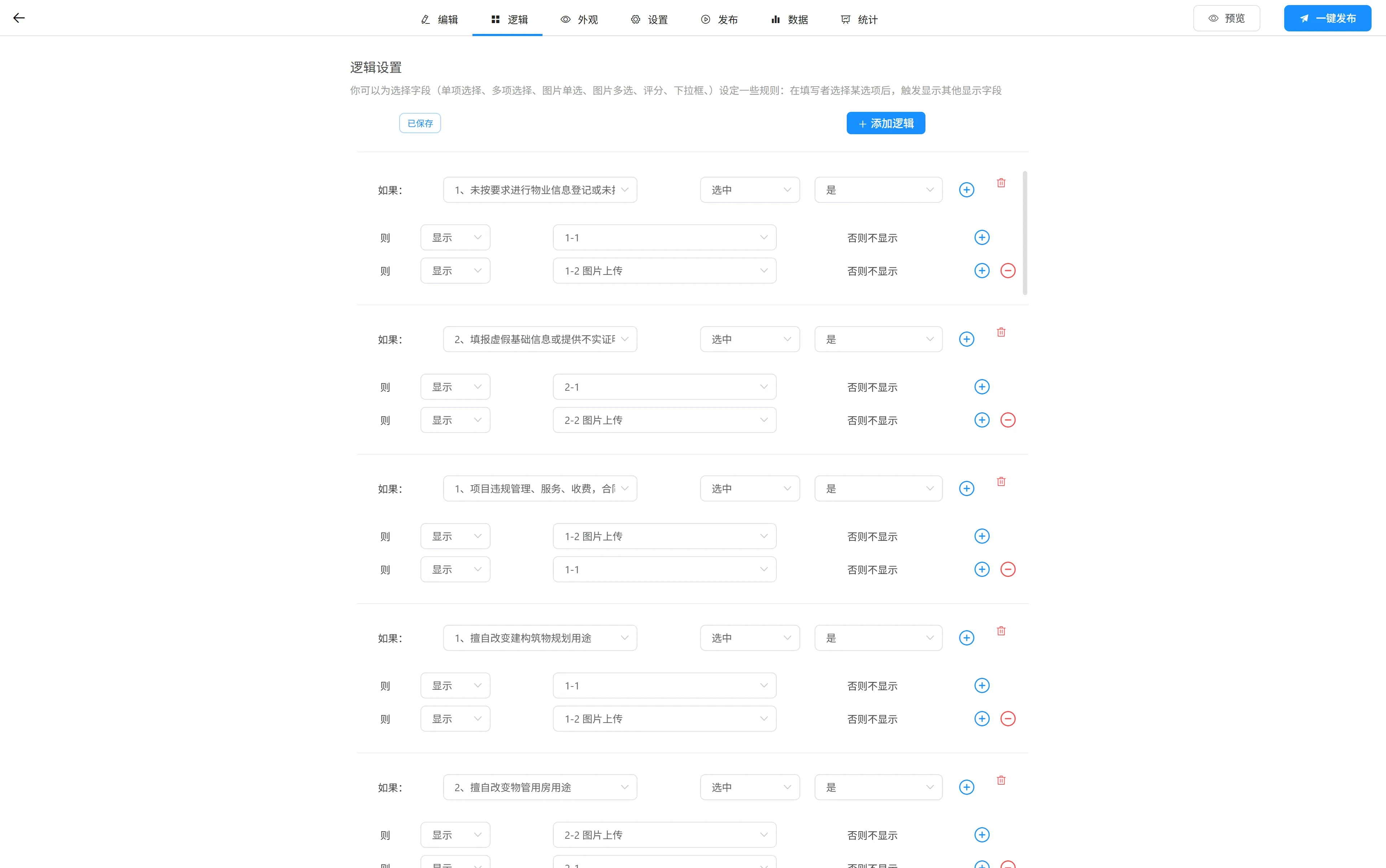 评价问卷表单项逻辑设置