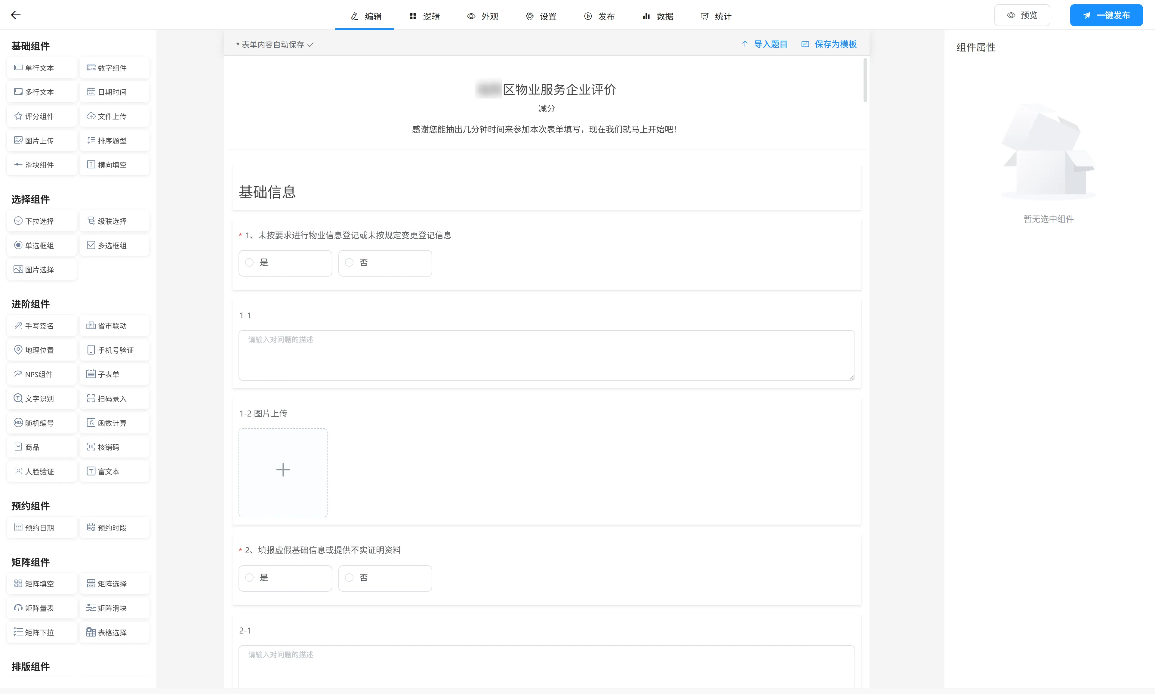 评价问卷表单编辑